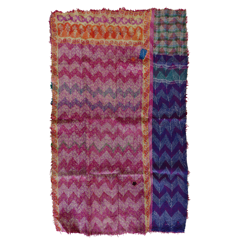 Bring bold color and artisan charm into your home with this Multicolor Vintage Lahori Kantha quilt. Crafted from 100% cotton, this vibrant textile is hand-stitched in traditional Kantha style with a rich zigzag pattern featuring shades of purple, green, yellow, blue, and pink — perfect for adding a boho or eclectic flair to any room.